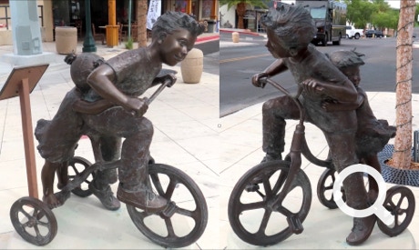 In Boulder City we were surprised at its cleanliness and quaint shops. There were interesting statues dedicated to the people that built Hoover Dam. We found statues of the Toilet Paper Man, Children on a Bike, a dedication to women, and one to working men.