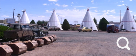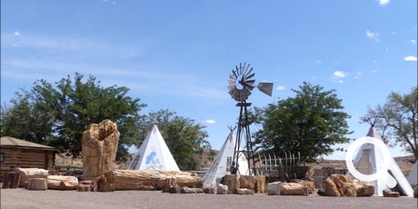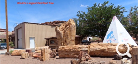 The World’s Largest Petrified Tree is located at the Geronimo Trading Post. They placed lots of teepees near it.
