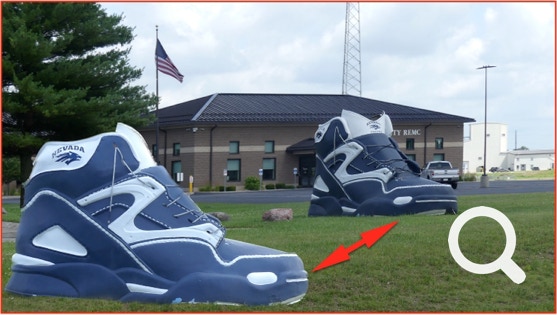 We drove on to find a giant, car-sized sneaker in New Castle IN. From looking at previous photos it seems that the shoe is re-painted in different colors every once-in-awhile.