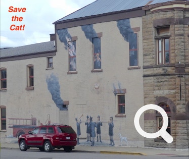 Before heading for our hotel we chose to stop by the old town area of Richmond IN. There we found some humorous murals. Check out the one where the firemen are saving a cat. Hilarious!