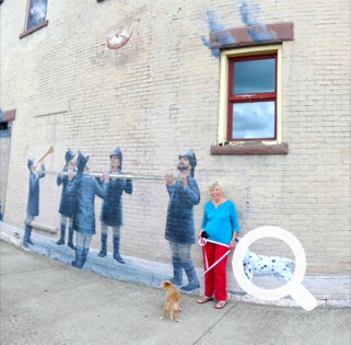 There’s another one nearby with windows opened, showing what people are doing inside. You might recognize the painting of the sailor kissing the nurse on V-J Day.