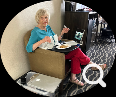 At our hotel Ellen quickly got comfortable and couldn’t wait to turn on her iPad to see the NBA California Classic. She is a true Lakers fanatic! She blames Jorge for that.