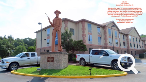 Since we’ve been driving through the West, we decided that we needed a big gunslinger photo. Check out “Big Jim, the Cowboy” in Bentleyville PA. He is thin and detailed and modeled after the artist’s son, James C. Krutz, Jr.