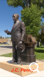 In the town of Kremmerer WY we found the statue of J.C. Penny. Yes, that’s the founder of JC PENNY stores. He is located at one corner of a triangular park. Across one street you’ll actually find a very functional JC Penny store…and it’s the “Mother Store” (founded in 1902)!