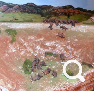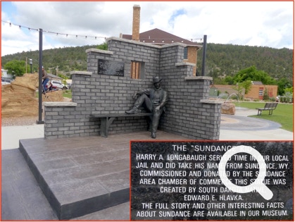 At the Cook County Museum in Sundance SD, we spotted a statue of Harry Alonzo Longabough. He is better known as the “Sundance Kid.” This museum is another gem. What caught our eye was a diorama of the Vore Buffalo Jump.