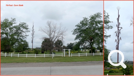 The tall cornstalk stands in a local park. It is 76-feet tall. Jorge wondered why lightening has not struck it!