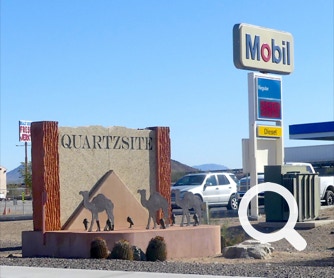 Then we looped around and came to Quartzsite AZ, the Rock Capital of the World! It’s located just 17 miles from the California border at the intersection of I-10 and Highway 95. Each winter two-million visitors are welcomed. We can testify that there were lots of people, cars, trucks and RVs in the streets. Ellen says she’s never seen so many RVs in one place. This is a ‘rocking’ town!