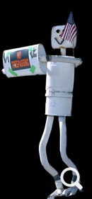 We drove to see a 10-foot metal man painted on both sides. At one time he had an arm that waved. Over the years, through rust and time, the elbow wore off. It was screwed back on in a very awkward way.