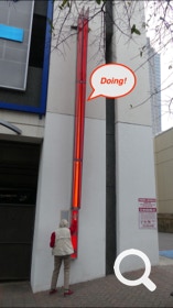 Just to the left you’ll see Jorge playing a tone at the town’s Musical Garage. It’s not music but different tones can be elicited by touching them.