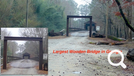 Then we left to see the largest wooden bridge in the state of Georgia. The bridge is rated to hold 3 tons Hmmm? We’ve read that an SUV would not fit. Jorge wanted to try it, of course, but Ellen put her foot down and said, “No!” So that was that and it’s her car.