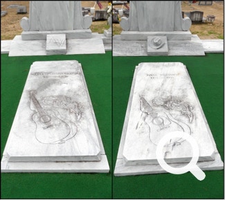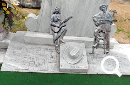 In Montgomery AL we stopped to examine the grave site of Hank and Audrey Williams. Astroturf is used instead of natural grass. It looks pretty good.