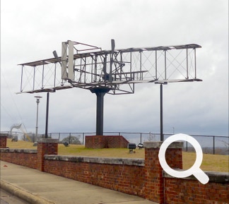 Heading out of town we saw a few good murals. The Nat King Cole mural was memorable. Just before jumping onto the highway we found a replica of the Wright Brothers’ airplane. It was stuck on a pole. Nearby there’s an air force base which also features a few jets on poles.