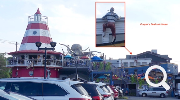 Then it was off to dinner at Cooper’s Seafood House (est. 1948). Not only is it a great place to dine, but the atmosphere of fun and frolic is all around. There are various dioramas of fantasy worlds. There’s bound to be a pirate statue in every room. This place is huge!