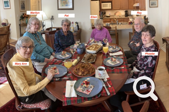 We got together with friends and with a few of Ellen’s relatives before leaving Winchester, VA. First, there’s a family picture featuring lobsters and shrimp Alfredo, Yum! Later Ellen had a brunch with a few TVOR friends. Again, yum!