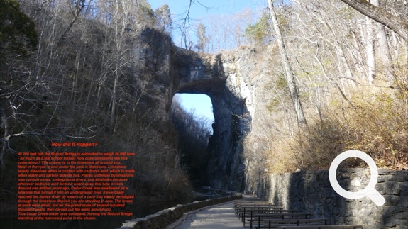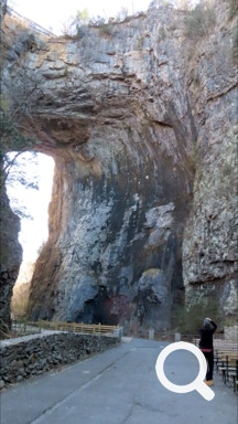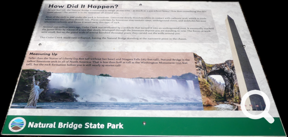 To make up for that we got to see Natural Bridge all by ourselves. We guess that t was a bit chilly for luring tourists. The State Rangers were kind enough to give us easy driving access to it. A short walk later and we got some awesome pictures. Hope you enjoy them!