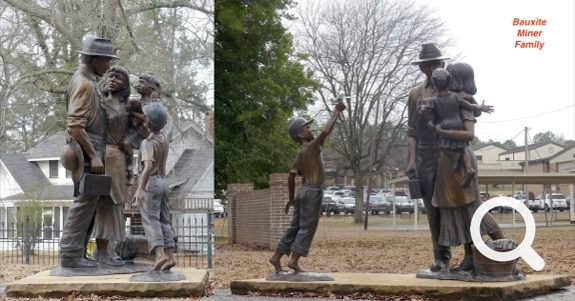 The town of Benton AR was known as the main producer of Bauxite. There is a statue which shows a miner in overalls carrying his lunch pail and hard hat as he says goodbye to his wife, who has a load of laundry in a peach basket and holds the couple's pig-tailed little girl. Nearby, the couple's barefoot boy plays with a model aluminum airplane, representing Bauxite's contribution to the WWII effort — namely bauxite, the ore that was smelted into the aluminum that was used to build America's warplanes.