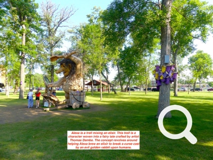 We got to see two of them. Alexa is a troll mixing elixir. She’s easy to find but there is a clue on the statue for finding the next troll. We went to find the next easiest one. He was Ronny Funnyface. Take a look at that face!