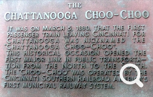So we headed to see the Chattanooga Choo Choo. Yes, everyone has probably heard the song and, yes, there is such a train. The train is located behind the Chattanooga Choo Choo Hotel. In the front of the hotel there is a trolley bus available for local tours. Wish we had more time.