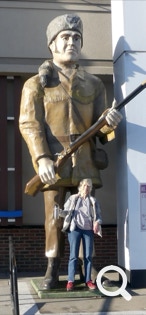 When we change drivers we prefer to stop at a filling station to use the bathrooms. We can usually count on good coffee too. A Travel Centers of America (TA) station honored Davy Crockett with a big statue. Ellen had to have her picture with the hero.