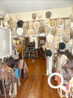 Many of the rooms upstairs held exhibits about saddles, cowboy hats, cowgirls, schools and more. We show a few in our photos today.