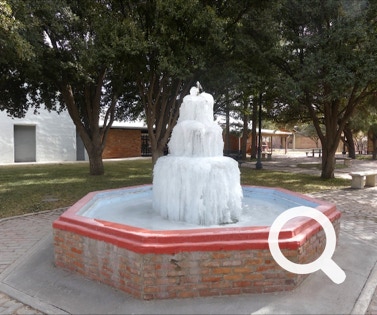 The museum has a small park for children next to it. It includes a big water fountain. It was frozen. Yes, it was cold but the sun was shining. It was an odd thing to see in this desert town.