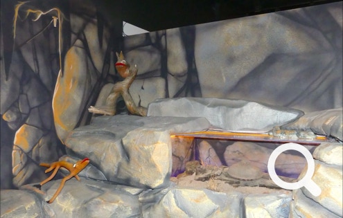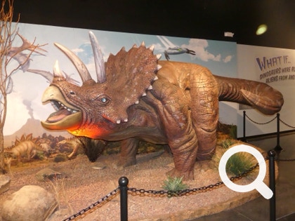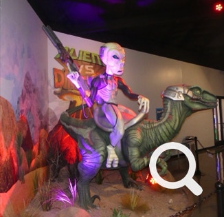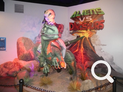 Today’s exhibits feature aliens and dinosaurs with lots of humor and questions like: What if dinosaurs were controlled by aliens? Pretty funny!