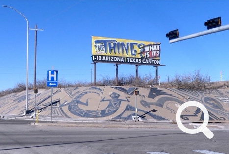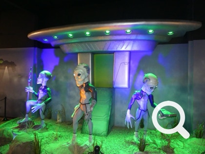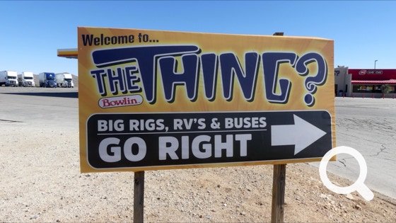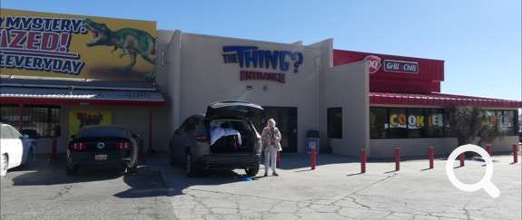 The Thing? is a roadside attraction. We were there years ago when it was a tacky, dusty exhibit. It had nothing to do with neither aliens nor dinosaurs. There was a car that claimed be that of Adolf Hitler.