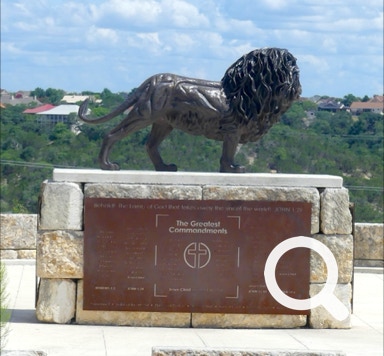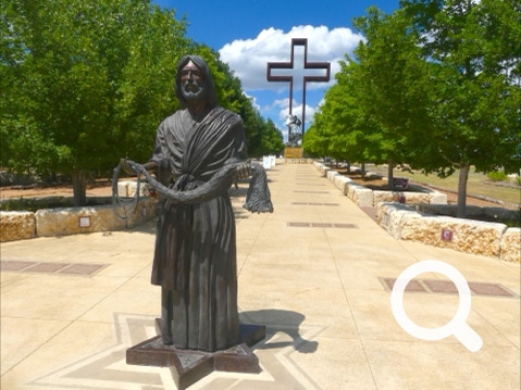 The 77’7” Empty Cross is something to see but it isn’t the only thing at this beautiful site. There are various statues: a lion, Jesus washing feet, the world vs the Word, plus a baptismal fountain and more. Yes, it all has a Christian motif. There are signs with Biblical scriptures on them everywhere, even on the walkway itself! As you drive out of the exhibit you are reminded to remember to take Jesus with you.