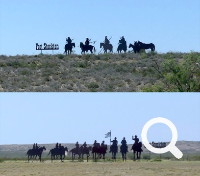 Fort Stockton, Texas is known for its Indian and cavalry silhouettes outside of town. The Indians are on the west side of town and the military group is coming from the east side of town. You see them from Interstate10, but there are more!