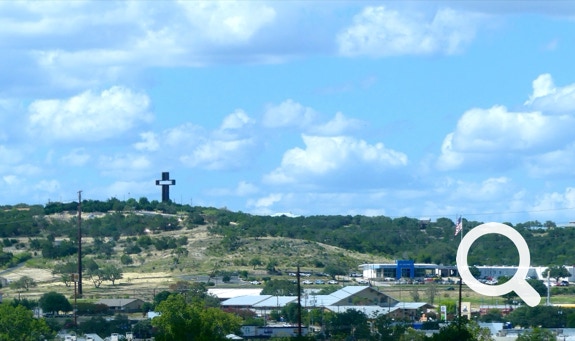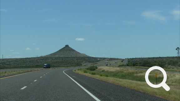 Ozona, Texas (advertised and the World’s Biggest Little Town) has a visitor center located at a rest stop. See the picture with a hat on the top of the state of Texas.