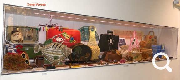 The purses and their contents were organized by decades and reflected both female fashion and life style from 1900 to 1999. The early purses often had smelling salts and stylish gloves but, of course, contained neither car keys nor makeup which if used, was applied only in private. Mid-century purses often contained cigarettes and lighters. As more women went to work, purses needed room for appointment books, calculators, and lunch.