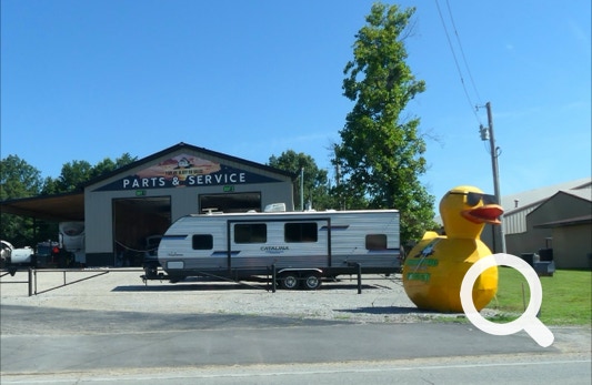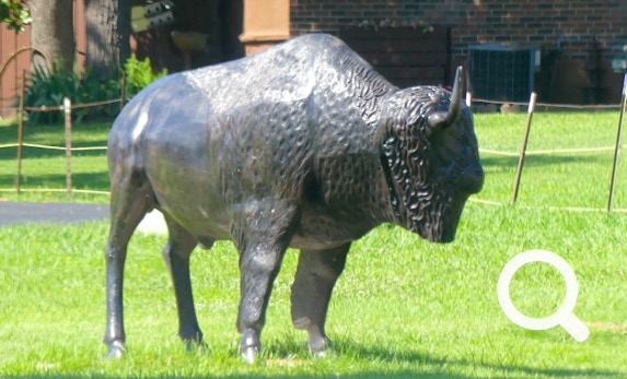 We saw many roadside attractions today and tried to take good pictures of them to show you. On our way to see the Big Indian Statue in Poplar Bluff, Missouri, we spotted a large tractor on the road, a big balloon Teddy, a cool rubber duck with shades on, a bronze horse and buggy, and a bronze buffalo. And that was just a start.
