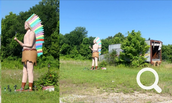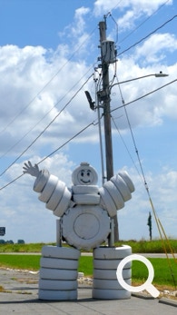 Not far is a White Tire Man advertising a tire center. One of his hands was missing!