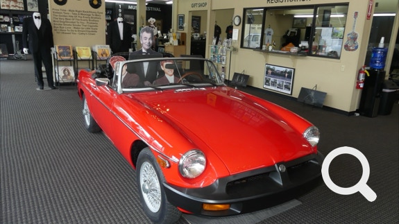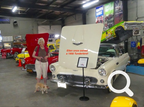 This museum is also doubles as the Kentucky Motorsports Museum and Hall of Fame. There is one car exhibited in the music section. It was donated by Don Everly. So that makes sense to have it there. The other cars were in the back. Ellen found a 1956 Ford Thunderbird just like the one she once owned. She and Tickle posed for a picture.