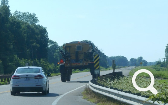 On our way to Central City, Kentucky we spotted a team of professional mowers working the side of the road. Jorge wants to drive one of those machines.