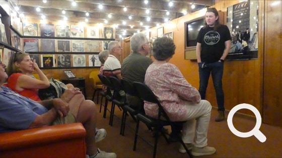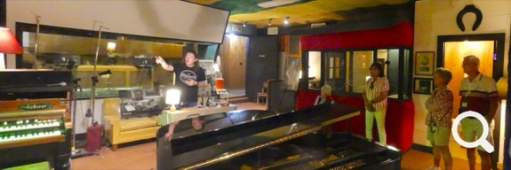 A group of his session musicians (Barry Beckett, Roger Hawkins, Jimmy Johnson and David Hood) struck out on their own to start Muscle Shoals Sound Studio. That was our next stop. Here are a few acts that recorded here: Bob Dylan, the Rolling Stones, Wilson Pickett, Percy Sledge, Willie Nelson, Lynyrd Skynyrd, Joe Cocker, Paul Simon, Bob Seger, Rod Stewart, Cat Stevens, Cher, and George Michael. Our docent told us that even though the studio is in a dry county that its hidden bar was the center of local bootlegging. However, our next studio, the Cypress Moon Studios had an even bigger bar!