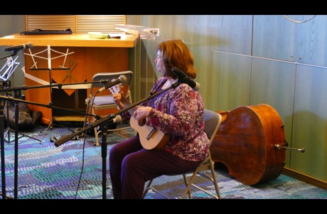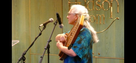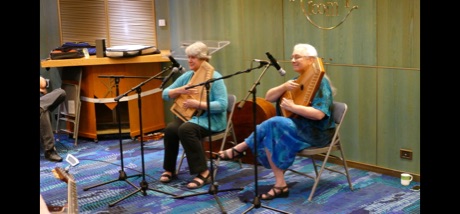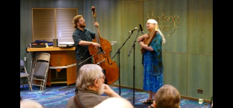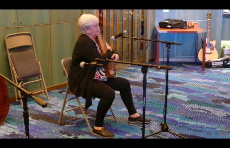 Eileen Kozloff’s unique talent was exhibited (below) for us as she demonstrated a few of the songs on her new CD. This occurred before the jam. As you can see (below), she also asked several MLAG friends to back her up on a couple of songs. What style!