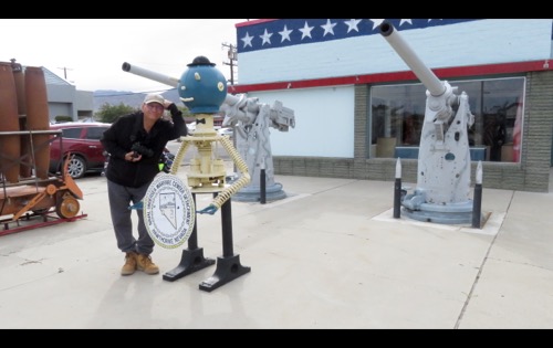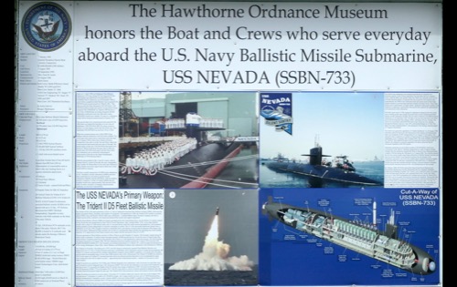 We had a late lunch in Hawthorne NV. It was a place known for making military ordinance. Today it is just stored there. About once a month, when ordinance gets old and stale, it is exploded just outside of town. Some of the locals claim that they can tell what is being exploded by the sound made. Of course, we visited their Ordinance Museum. Let’s just say that there was lots of it. Those large pool balls you see in the slide show below are actually water mines from WWII. A local Navy base still trains soldiers there. It was used to train soldier for deployment in Afghanistan due to the similar terrain. Some locals played the part of insurgents. Patriotism reigns high in this town.