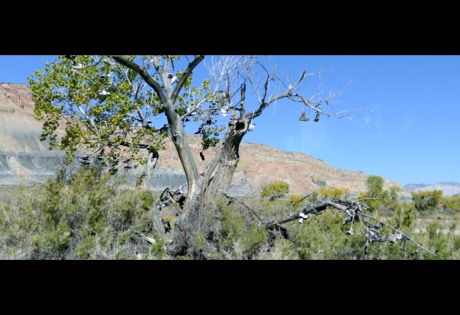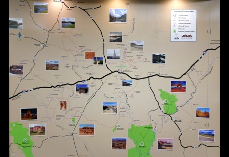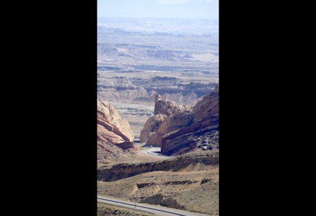Going 80 mph we managed to click a picture of another shoe tree in the center divider. Who thinks of putting these up? Check out those vistas above. Yes, we went to the John Wesley Powell Museum in Green River UT. He did very well and with only one arm sailed down the Colorado River through the Grand Canyon.