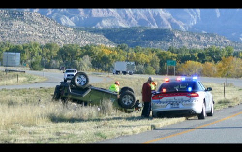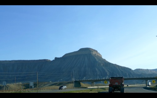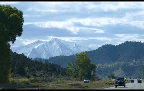 Two round-bouts are placed on each side of I-70 in Grand Junction CO featuring metal horses having fun. The road scenes today are so different than those in Nevada and Utah. The Colorado Rockies are awesome! And we found snow!