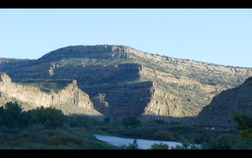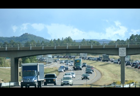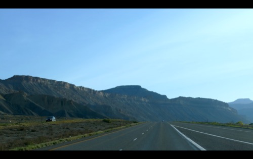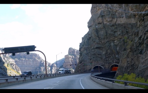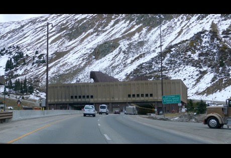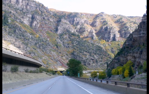 There was snow at the Vail Pass rest stop. Fortunately, no one needed chains. The weather has been good today. We went through several tunnels. Some were short and others long. Ellen says that she should have been a road engineer. What fun it would be making all those great bridges and tunnels. It’s another of her fantasies like the one about being the Lone Rangerette. Still, one has to admire those first surveyors that made the work possible.