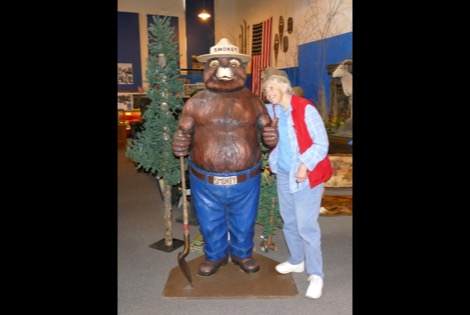 In Idaho Springs CO we had to go and see the statue of Steve Canyon. He is the precursor to many of our comic book heroes. Across the street is a very nice visitor center. There was so much to see and photograph. We highly recommend that people visit there. See Ellen with Smokey the Bear?