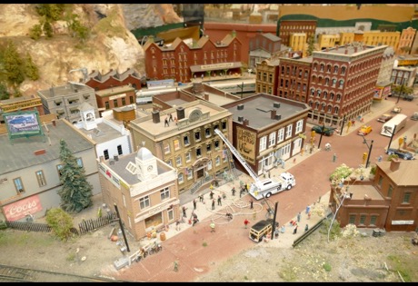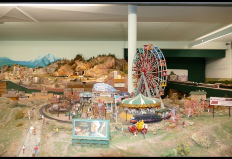 The Colorado Railroad Museum is in Golden CO. Downstairs the Denver HO Club has a miniature train exhibit. Carrie Arnold…yes, a girl, yeah…is credited for doing most of the art, scale and detail work. Check out those last two picture below all about the Galloping Geese.
