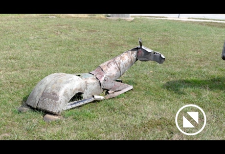 In Mountain View MO, right by the highway, there is a herd of horses made of scrap metal. They are very cute and shiny.