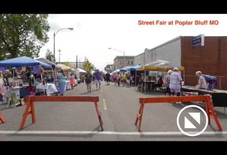 We found a statue of a Chief Indian in Poplar Bluff MO. Being made of concrete makes it different from the usual cigar store Indian statues. There was a street fair going on in town. It may be a regular Saturday event.