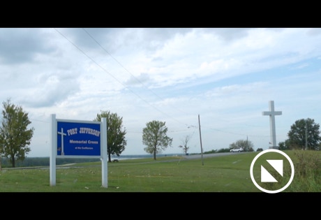 “A 90-foot-tall (27m) cross, the Fort Jefferson Memorial Cross at the Confluence, was completed in 2000 on Fort Jefferson hill.” Wow!