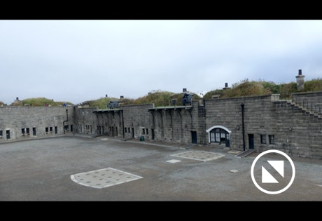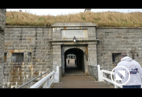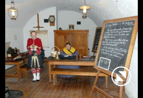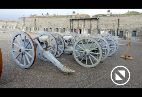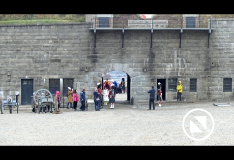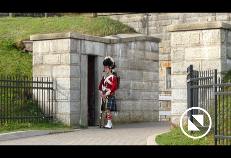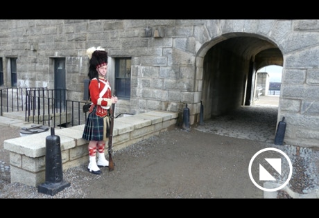 The weather improved as we arrived in Halifax. We visited the Halifax Citadel. There were many people in period clothing. The chilly weather didn’t stop them from wearing kilts. After going through their museums (historic and then wartime) we attached ourselves to a pretty guide. It started with a bang. See that rifle exhibition video below.
