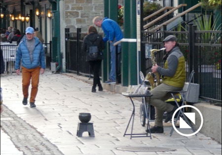 Naturally, we stopped at a local pub for delectable sustenance. It was the Bistro Sous le Fort. We requested and got a window seat to watch people walk by.