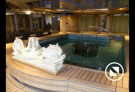 The ship, built in 2002, can accommodate 1,964 passengers (plus about 800 crew members) on its eleven decks. That’s 82,318 tons of floating magnificence. By contrast, the infamous RMS Titanic’s tonnage came to 46,328 and had 9 decks. Yet, it could hold 3,487 passengers and crew! Must have been crowded!